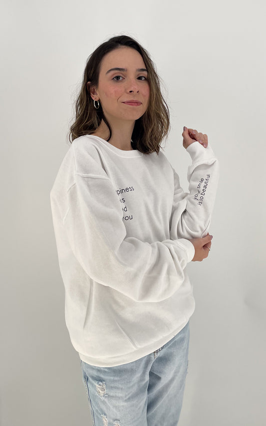 White Happiness Fleece Crewneck